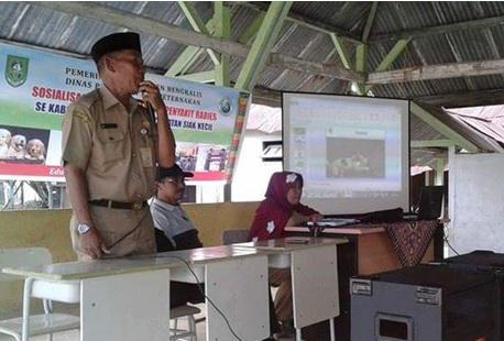 Dinas Pertanian dan Peternakan Kabupaten Bengkalis mengadakan sosialisasi penanggulangan rabies Se Kabupaten Bengkalis di Kecamatan Siak Kecil, Selasa (18/10/16) yang dilaksanakan oleh UPTD Pertanian dan Peternakan Kecamatan Siak Kecil bekerjasama dengan UPT. Puskesmas Lubuk Muda Kecamataan Siak Kecil.